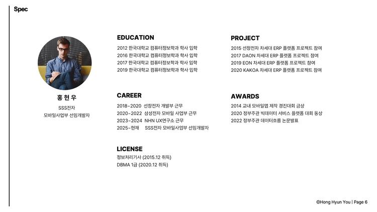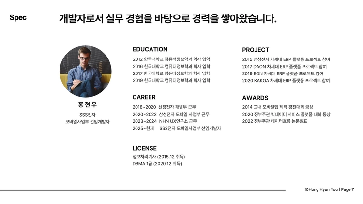 인쇄가 편한 화이트 배경 개발자 포트폴리오 PPT 템플릿