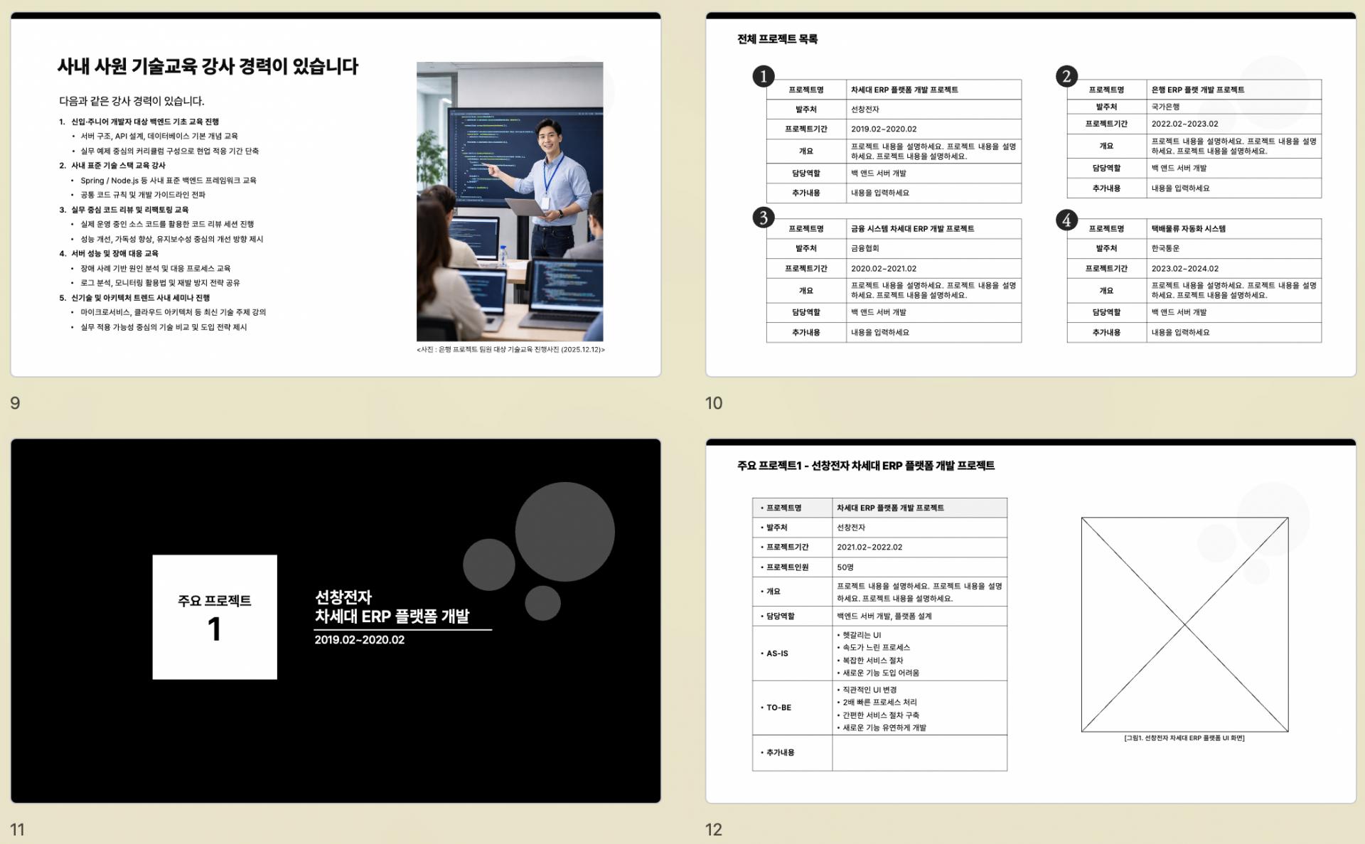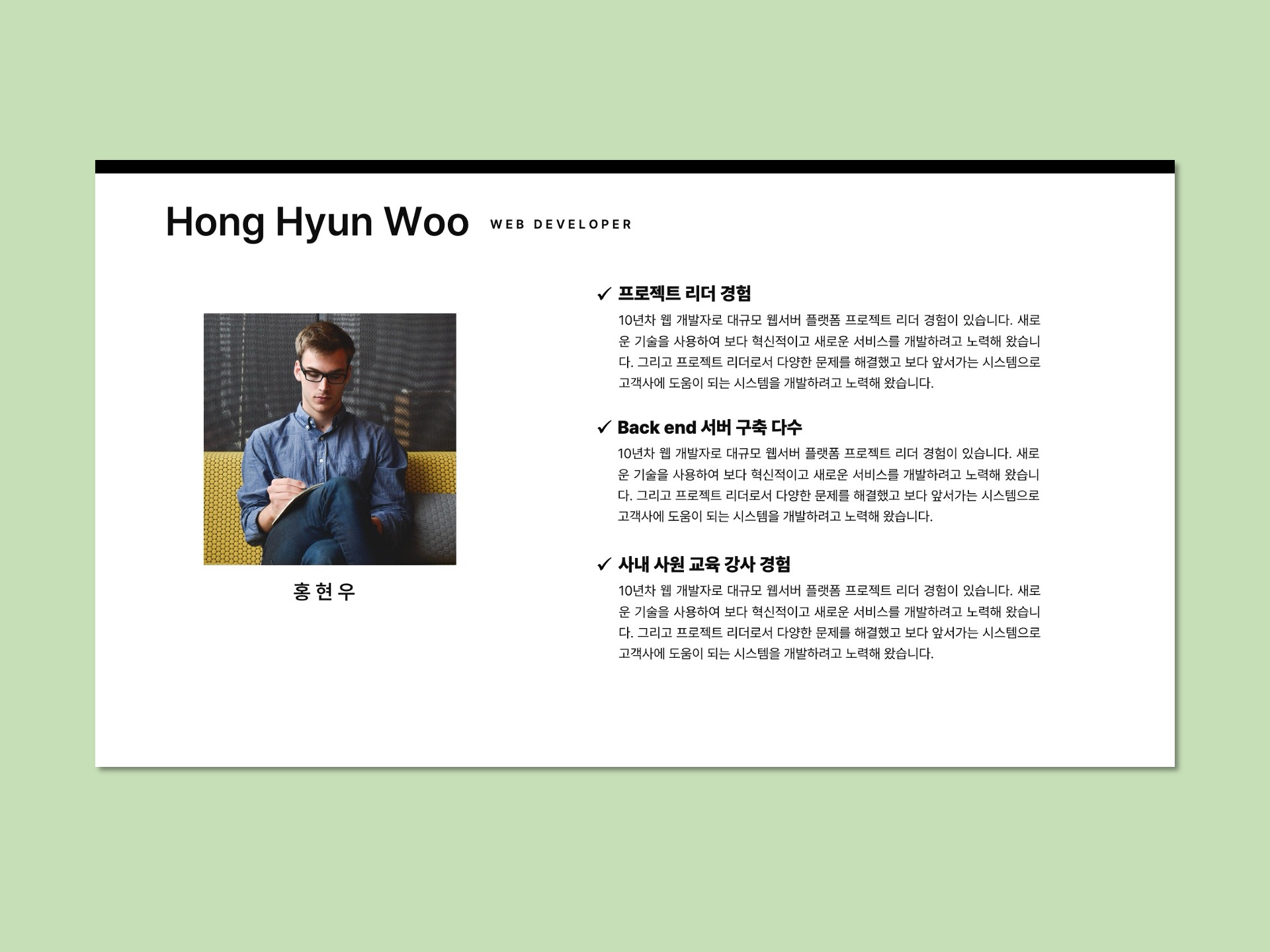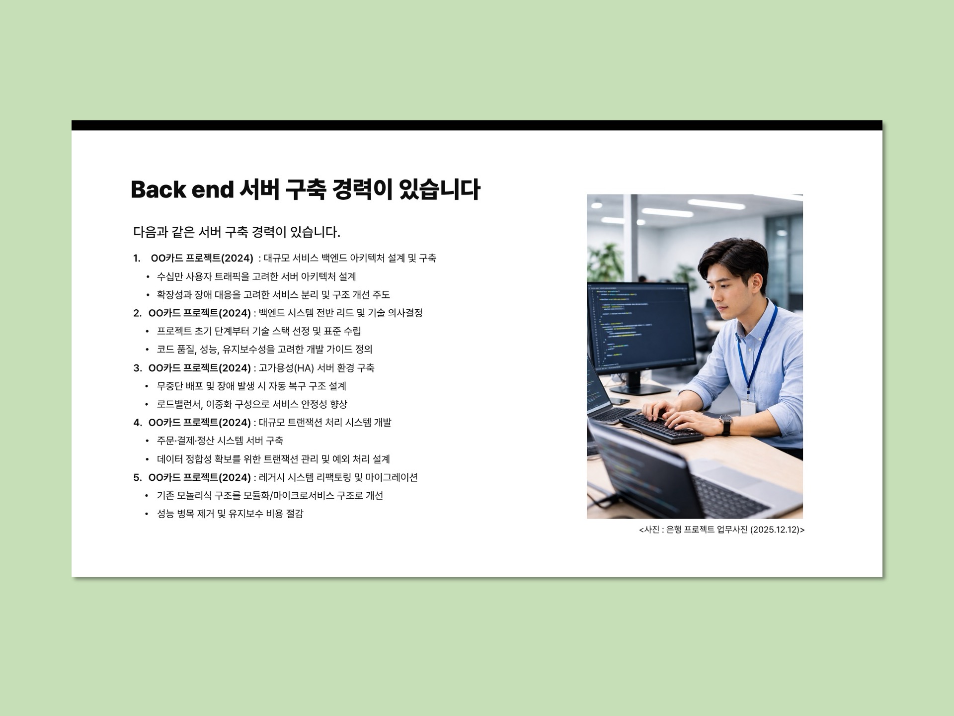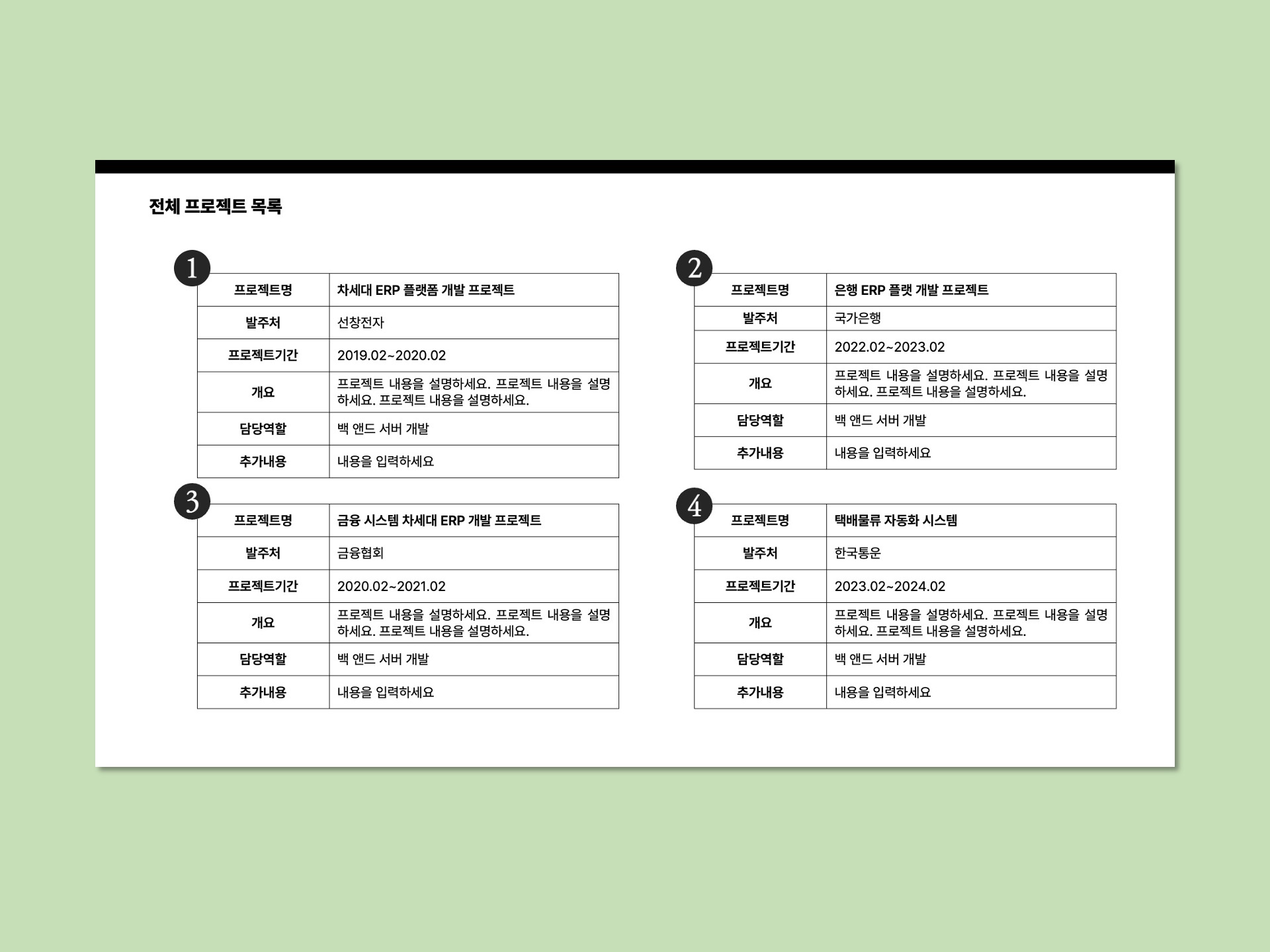 - 경력 포트폴리오에 필요한 콘텐츠를 제공합니다.