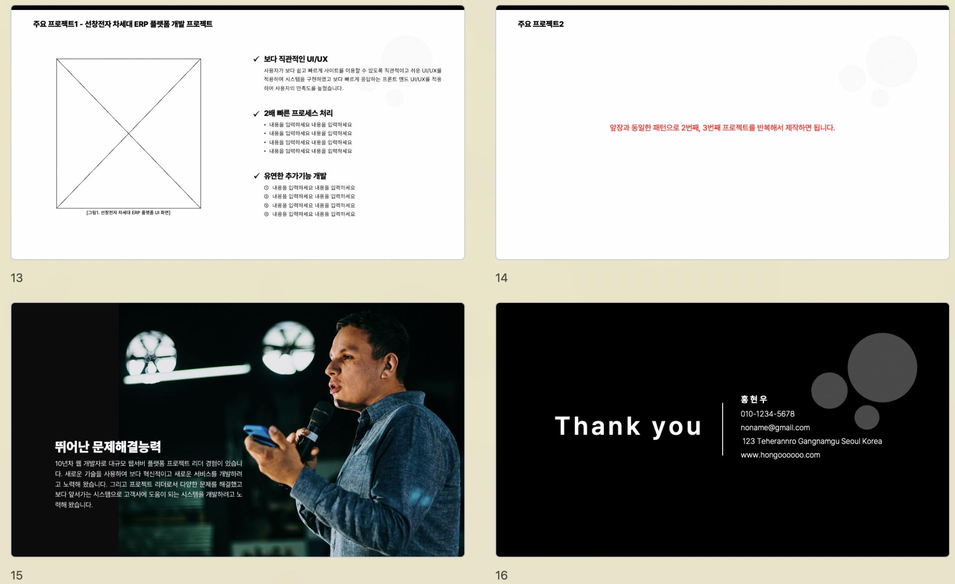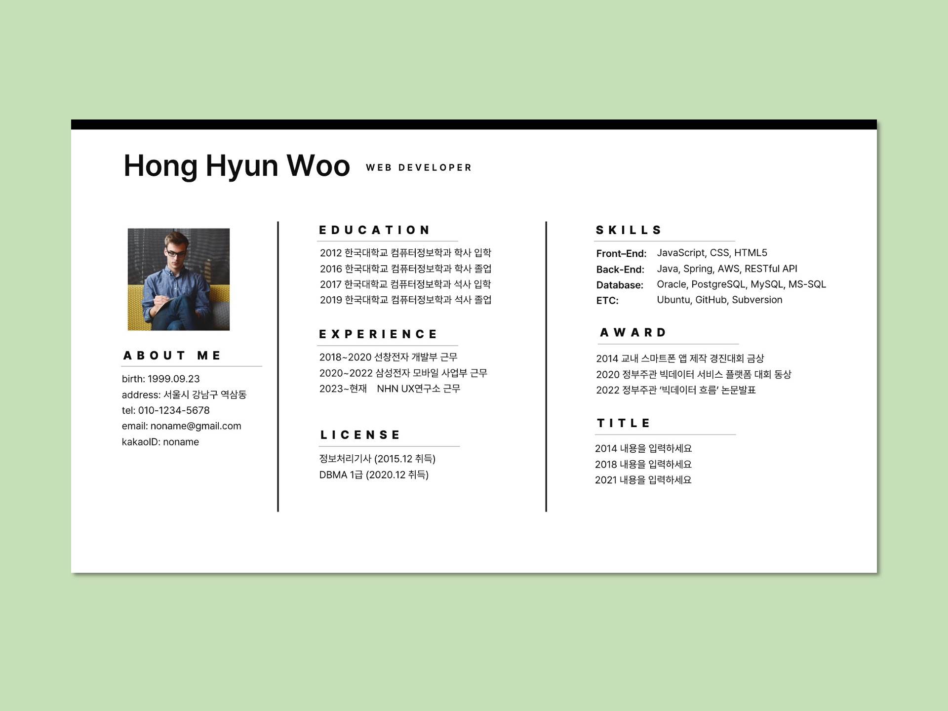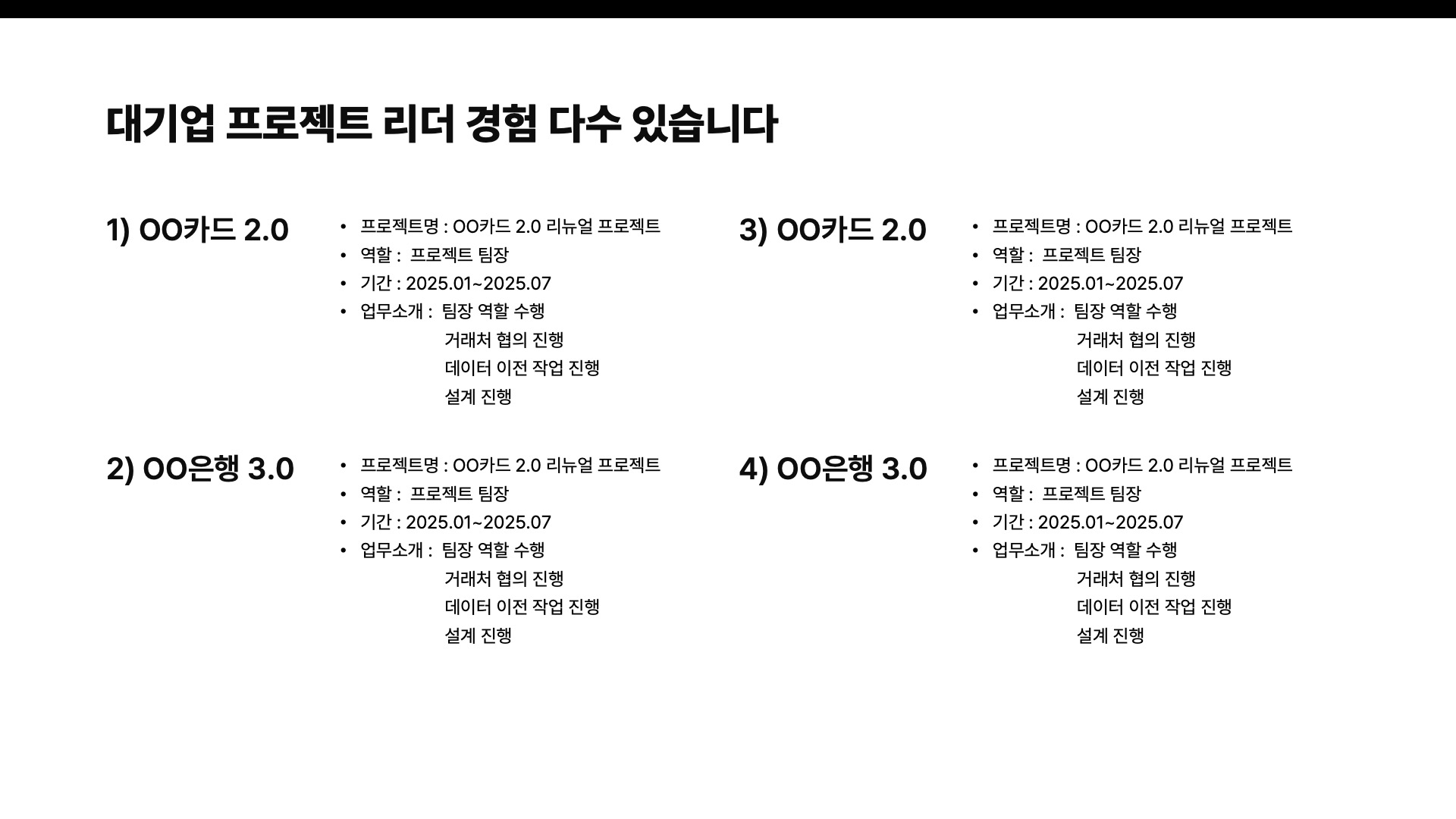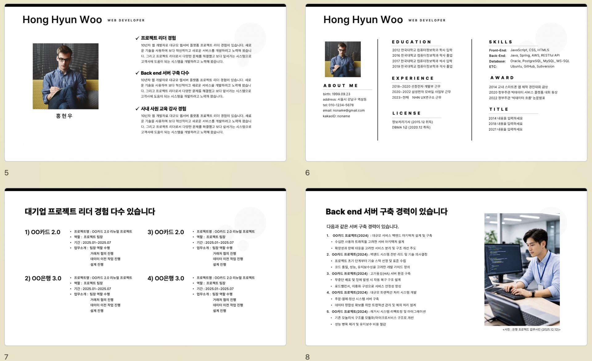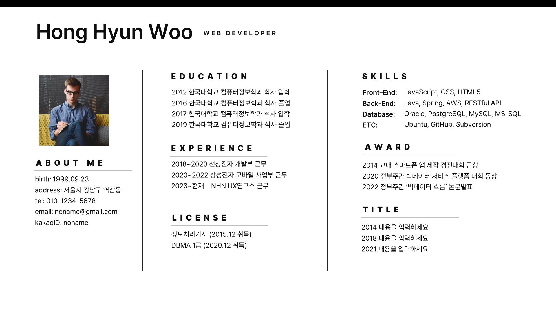 - 경력 포트폴리오에 필요한 콘텐츠를 제공합니다.