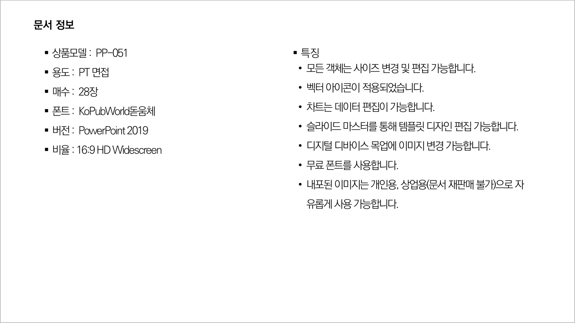 - PPT 문서 상품의 경우 디지털 파일 특성 상, 교환과 반품, 취소가 어렵습니다. 이 점 참고 부탁드리고 신중하게 상품 선택후 구매 부탁드립니다.