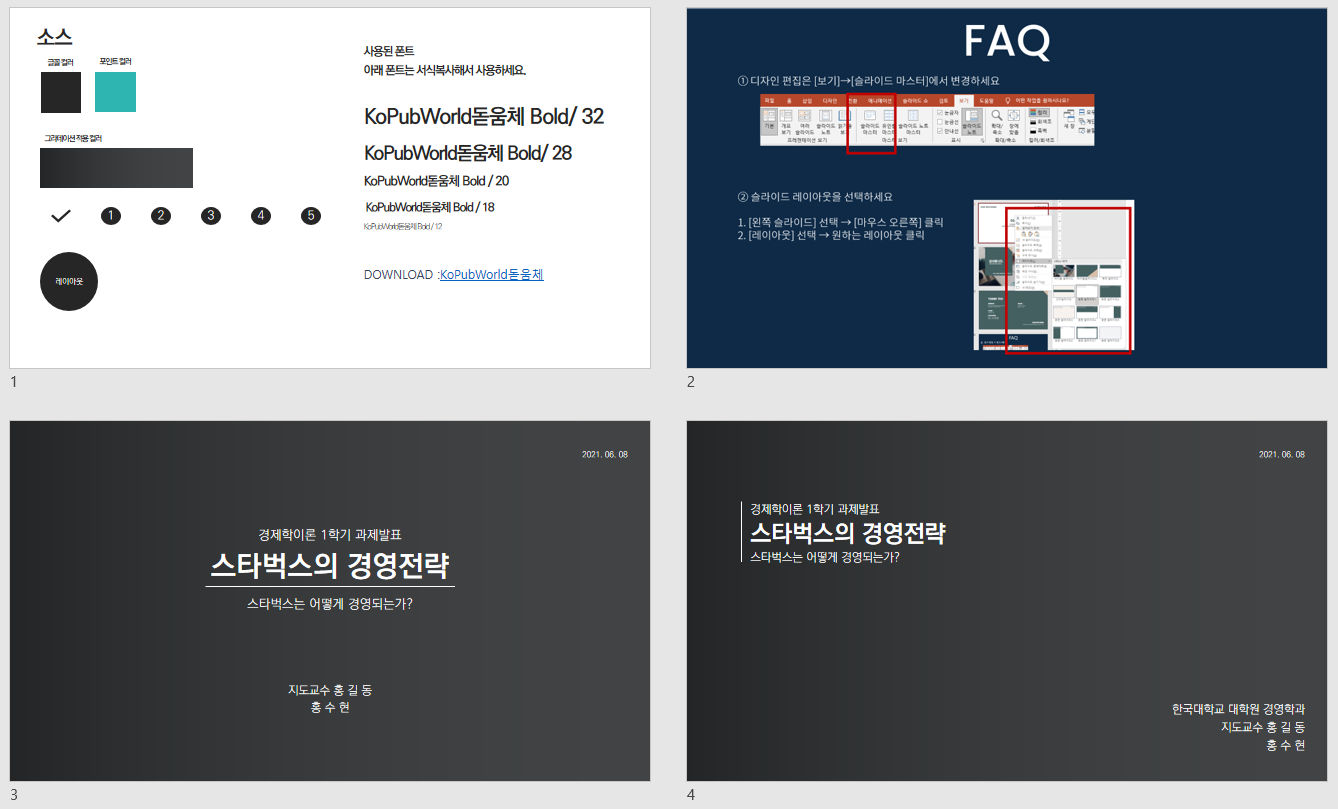 - "파일의 글꼴 포함" 저장 또는 발표 PC에 외부글꼴을 설치해주세요.