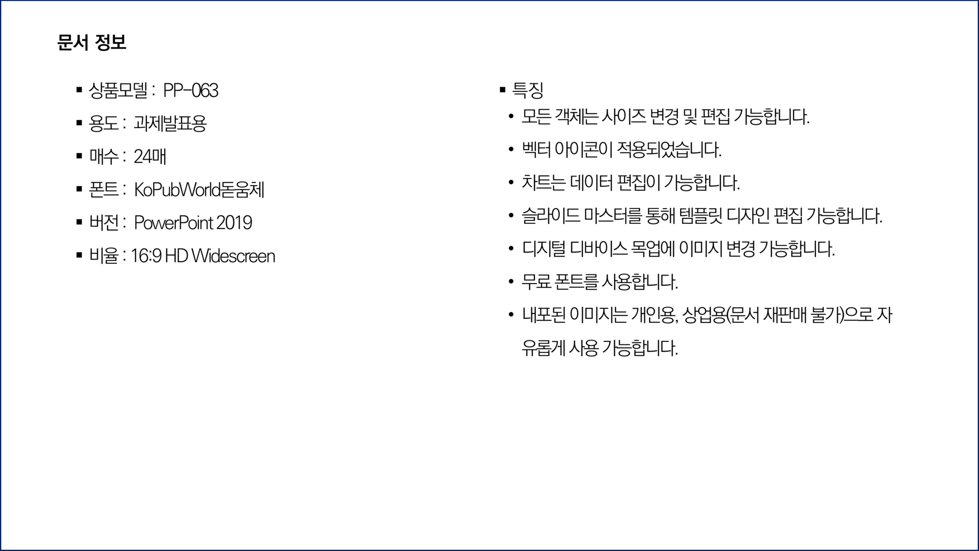 - PPT 문서 상품의 경우 디지털 파일 특성 상, 교환과 반품, 취소가 어렵습니다. 이 점 참고 부탁드리고 신중하게 상품 선택후 구매 부탁드립니다.