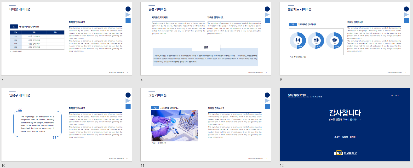 - 대학교에서 과제나 프로젝트 발표에 어울리는 디자인입니다.