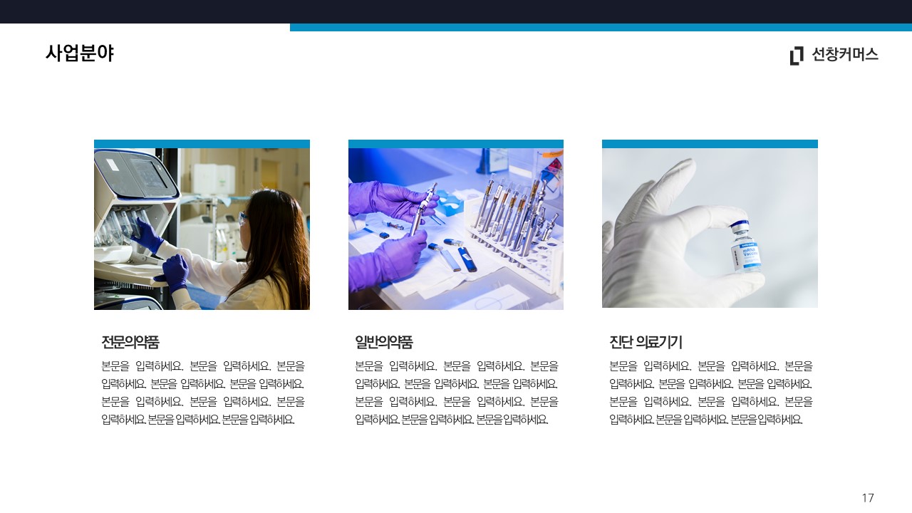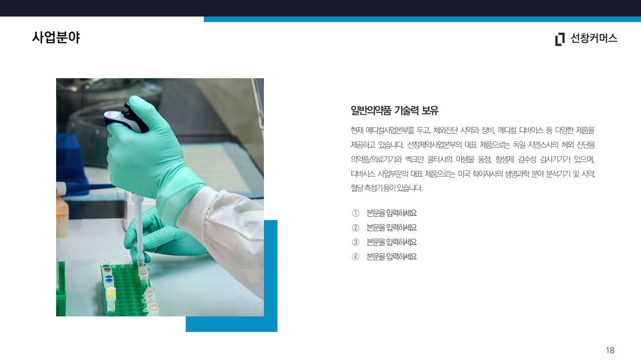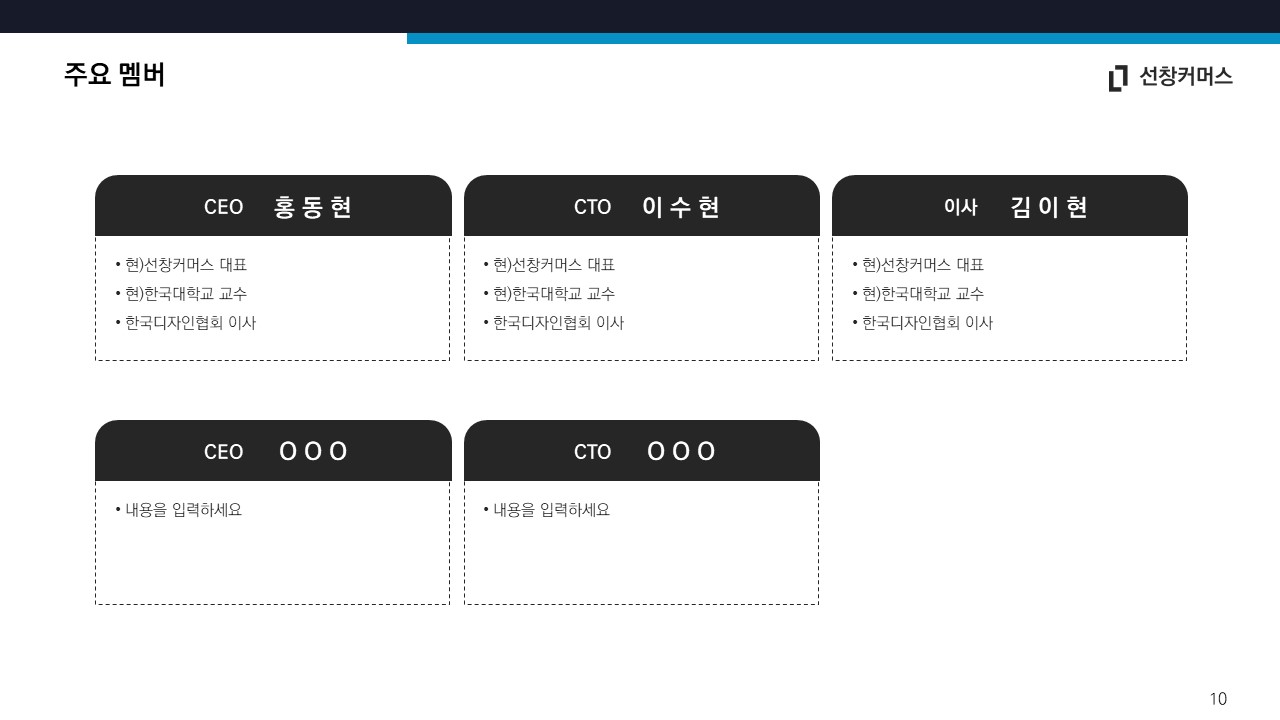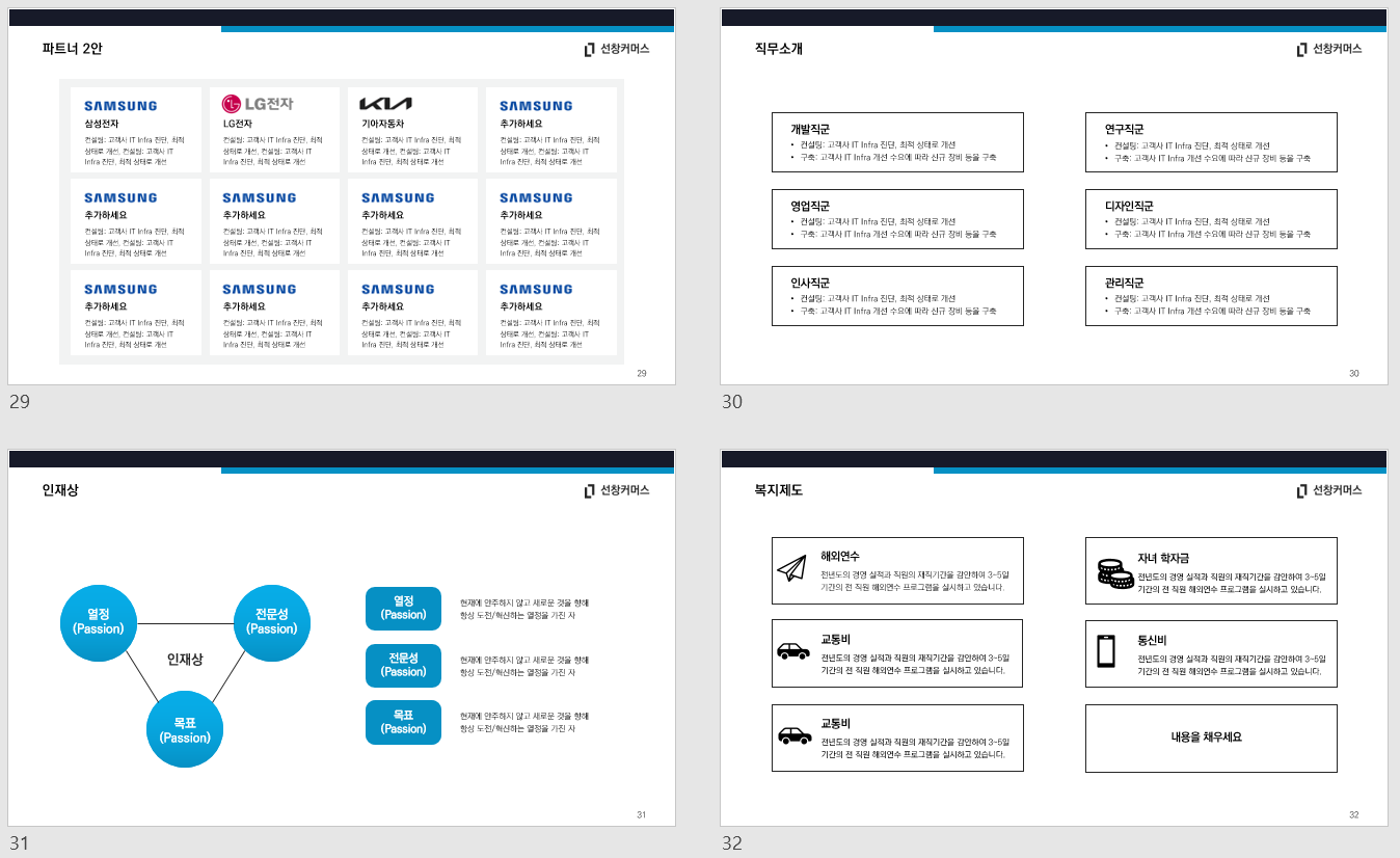 - 회사소개서에 필수적으로 필요한 다양한 콘텐츠를 추가하였습니다.
