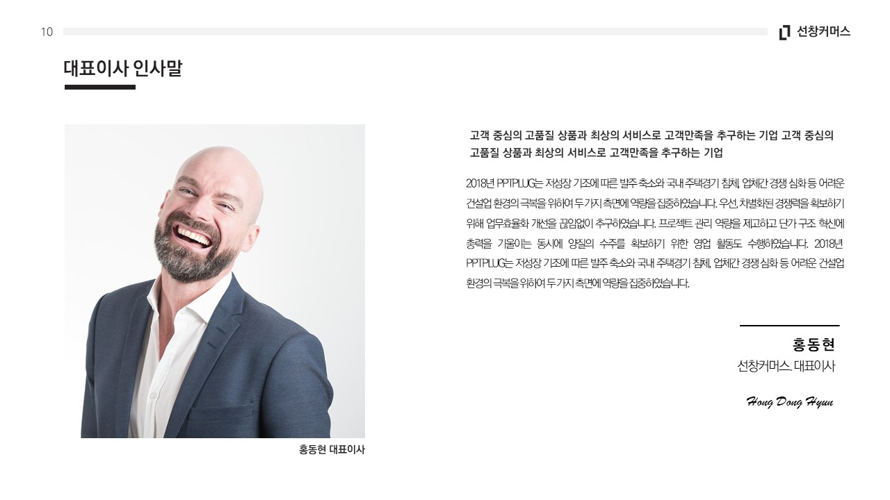- 회사소개서에 필수적으로 필요한 다양한 콘텐츠를 추가하였습니다.