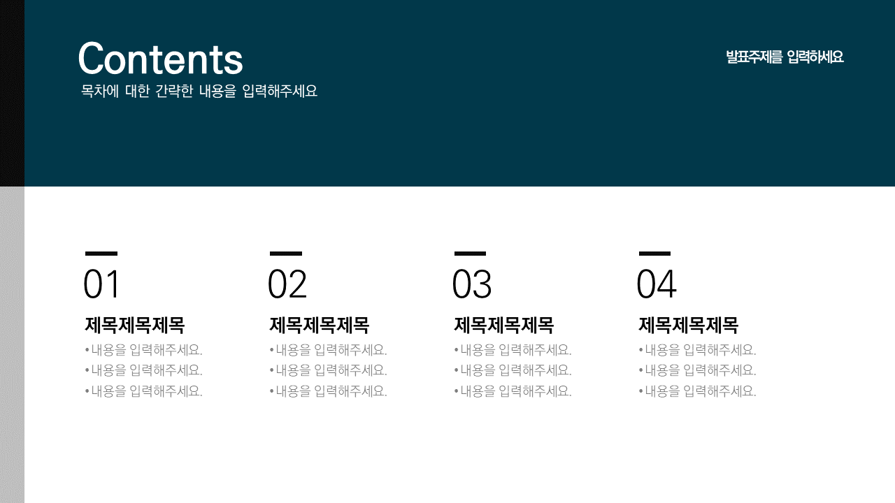 - 사각형과 직선을 활용해 디자인한 심플하고 가벼운 문서입니다.