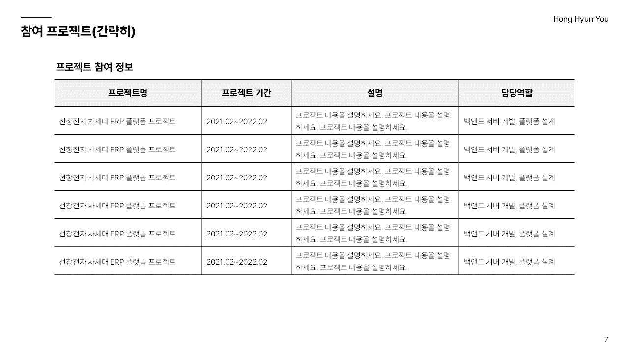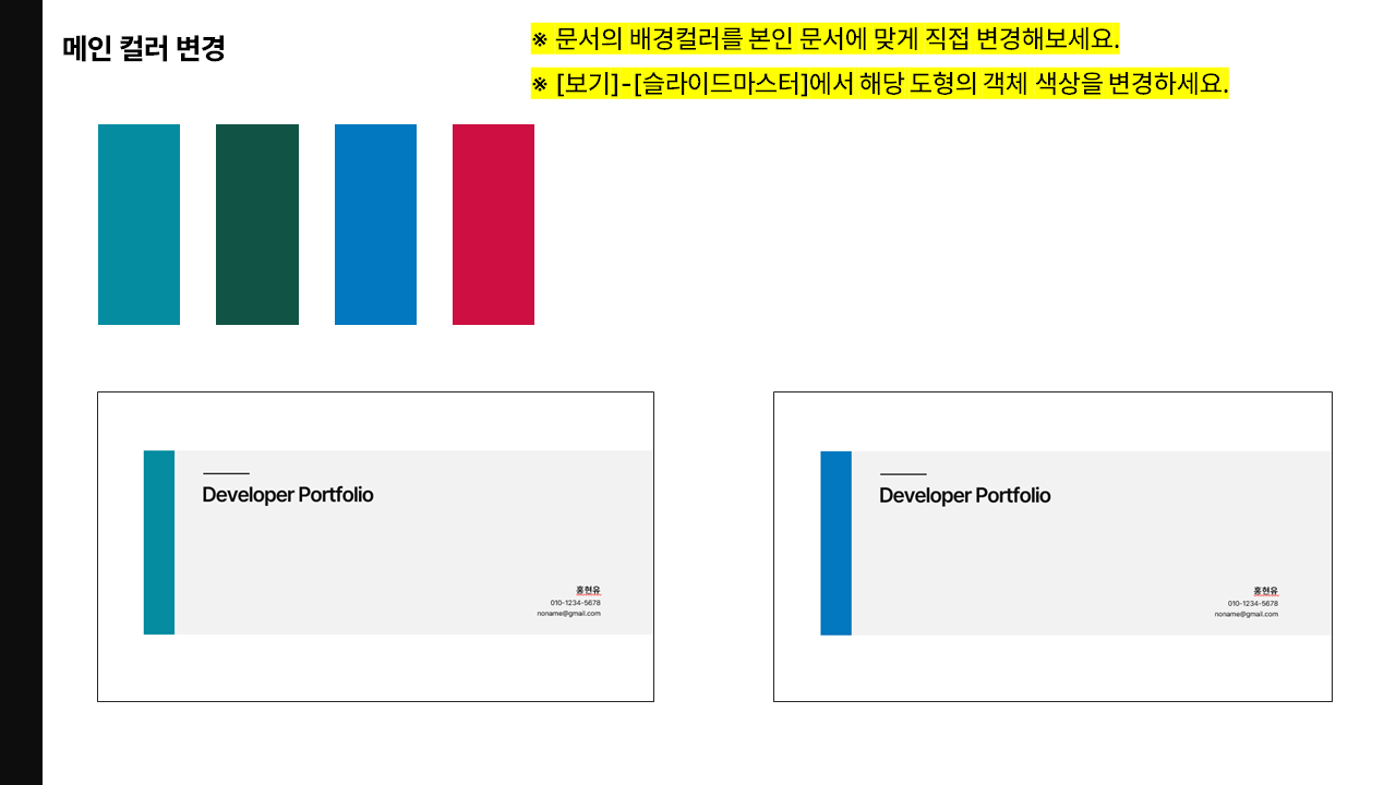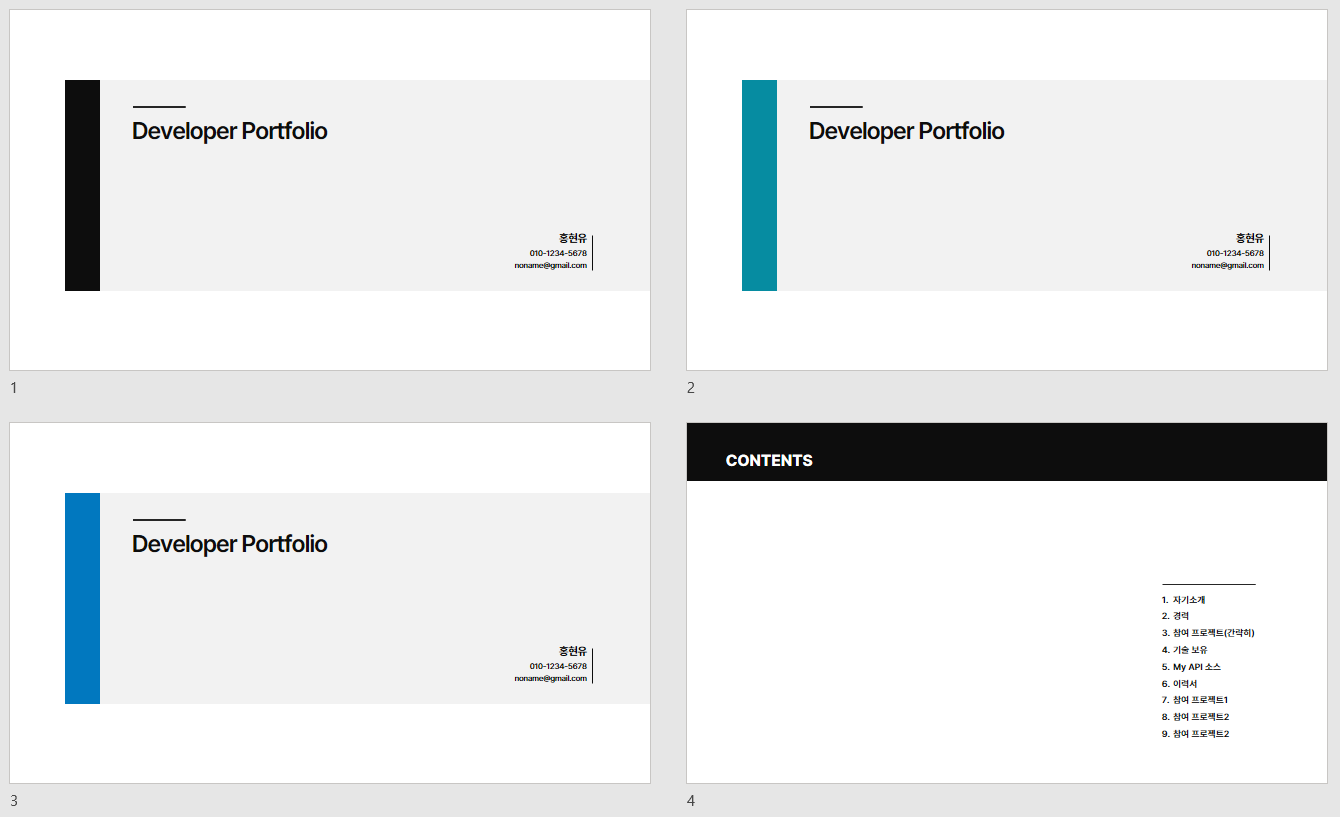 - 개발자 포트폴리오 PPT 템플릿 문서입니다.