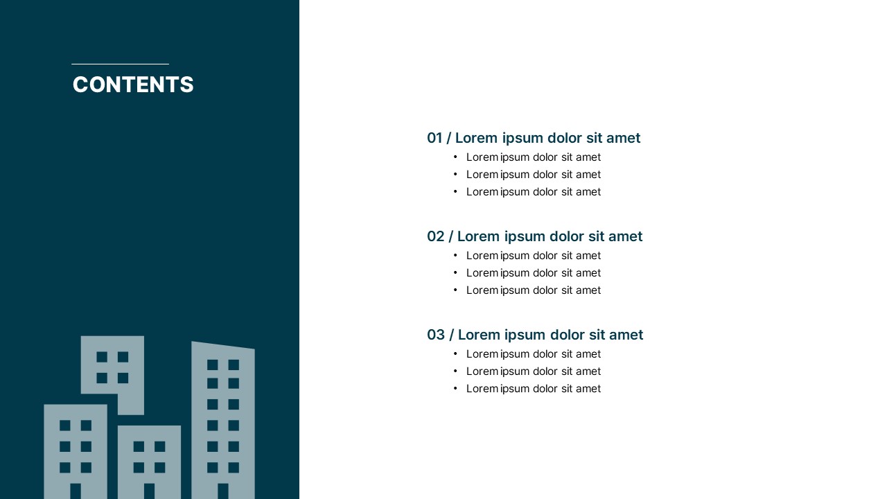 목차를 우측에 배치하는 PPT 레이아웃 예시