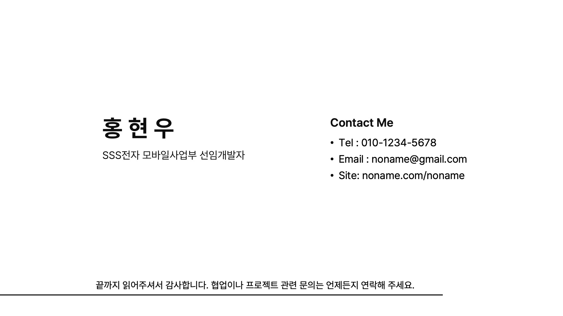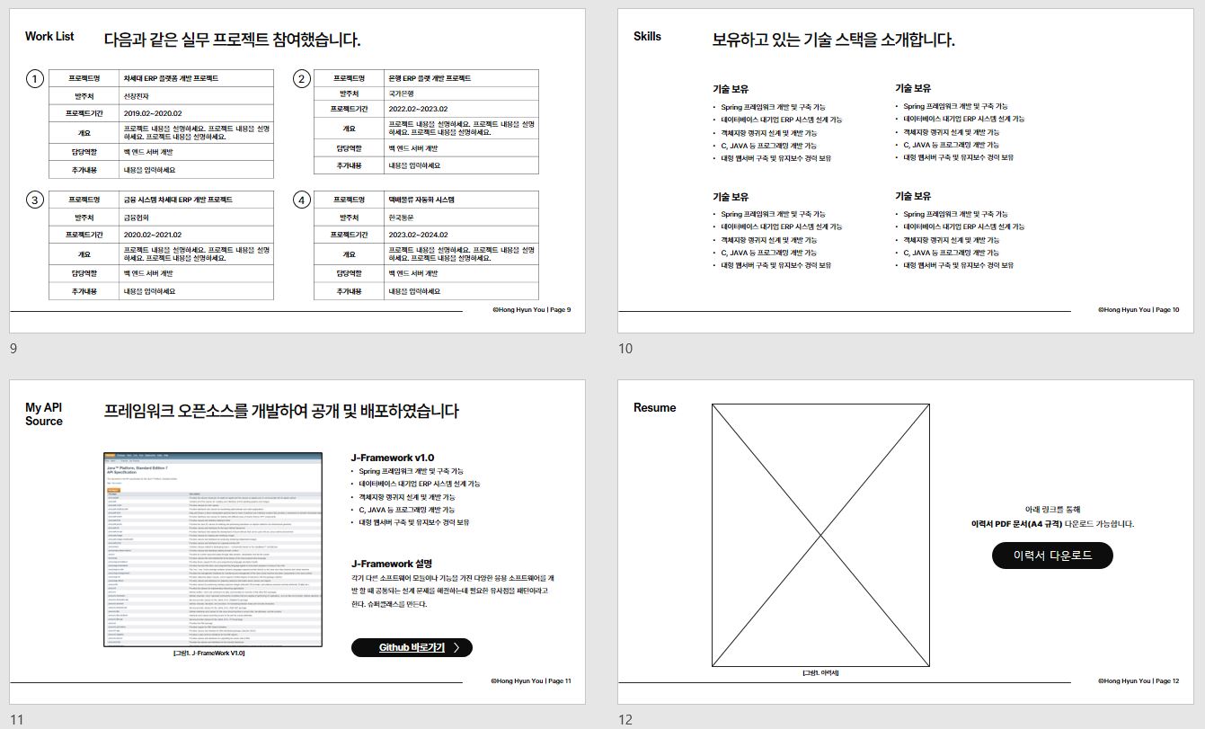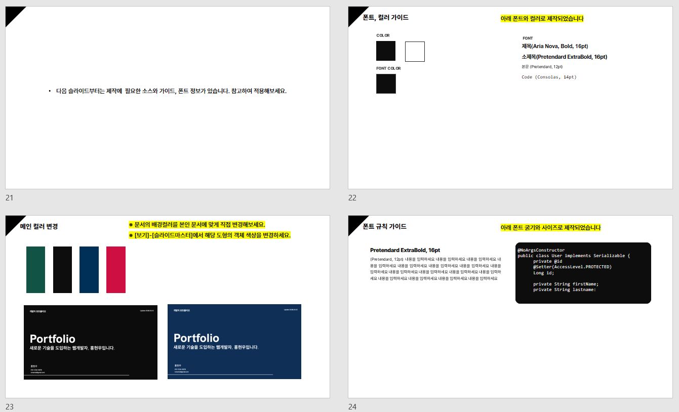 - 개발자용 포트폴리오 PPT 템플릿 문서입니다.